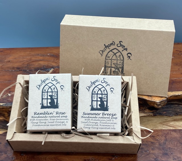 2X soap gift set- Choose 2 soaps of your choice for this gift option. Presented in a fully recyclable box with recyclable paper packaging.
