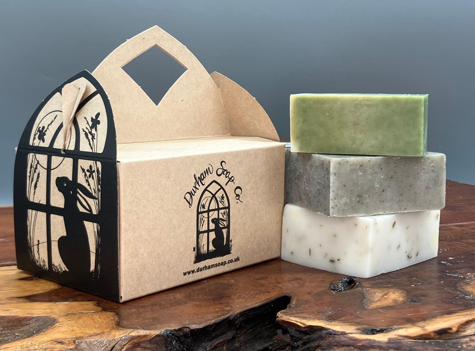 x 3 full size soap bars beautifully presented in our custom made gift boxes make this the perfect gift for any soap lover. Our Green gift box contains French Fields, Wild Wood and Scarborough Fair.
