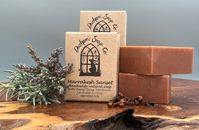 Natural soap, handmade with our blend of pure plant oils, enriched with moisturising shea butter, cocoa butter, and castor oil for a rich and creamy lather. This soap also contains natural Moroccan lava clay for its detoxifying properties and its rich red colour. Fragranced with a blend of Ylang-Ylang, Patchouli, Lavender, and Clove essential oils to tantalise the senses with the rich scents of the spice route, camel caravans laden with their precious cargo of silks and spices heading from East to West via the souks of Marrakesh. Use on hands and body.